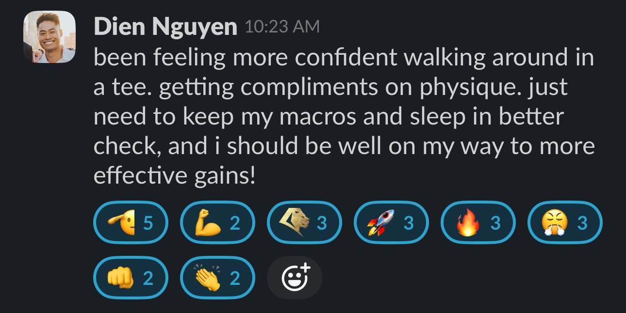 “…I had chicken legs, now i'm buying new jeans (from muscle growth)…”